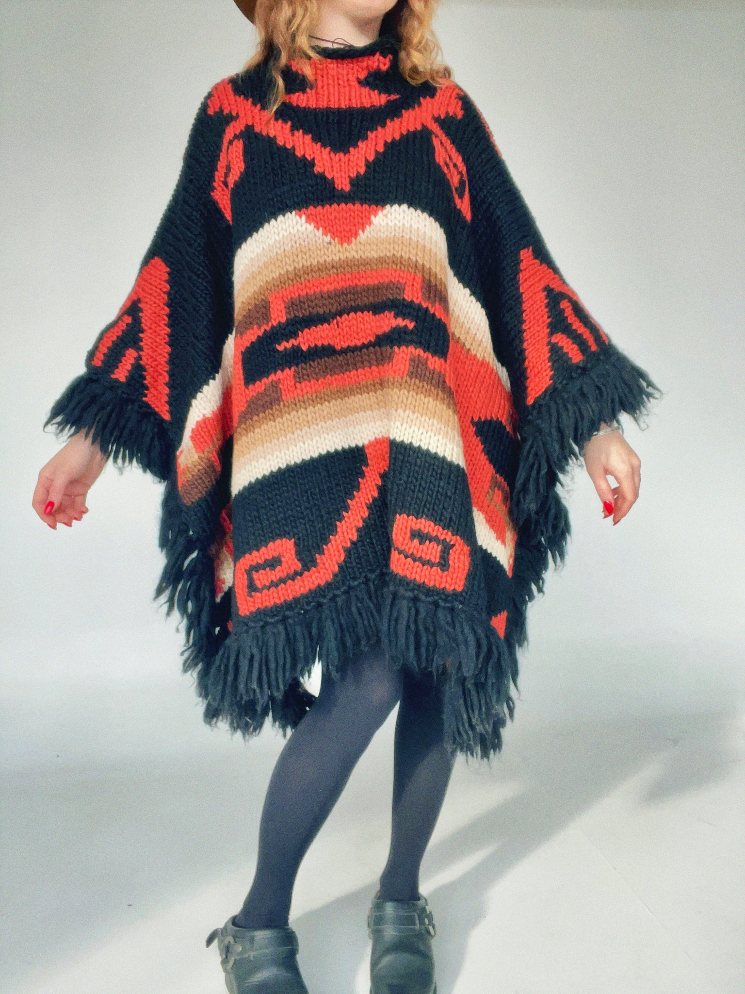 A rare gorgeous and Y2K vintage Ralph Lauren Southwestern handknit wool fringe poncho. Incredibly soft wool that is thick and heavy yet not too bulky and very cozy! Almost like a blanket wrapped around you! Perfect for anyone, gender neutral and an open size. Perfect for lounging at home or styling as outerwear. Pulls on. Unlined.