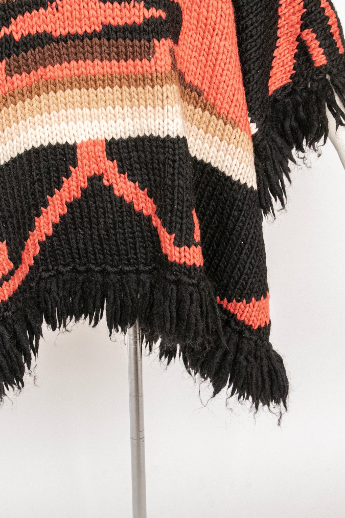 Ralph Lauren Hand Knit Wool Wrap Sweater Fringe Poncho Southwestern