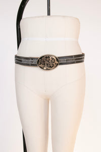 • 1980s Belt Black Leather Gold Buckle Designer XL