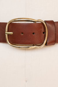 • 1970s Leather Belt Brown Boho Oversized Buckle L