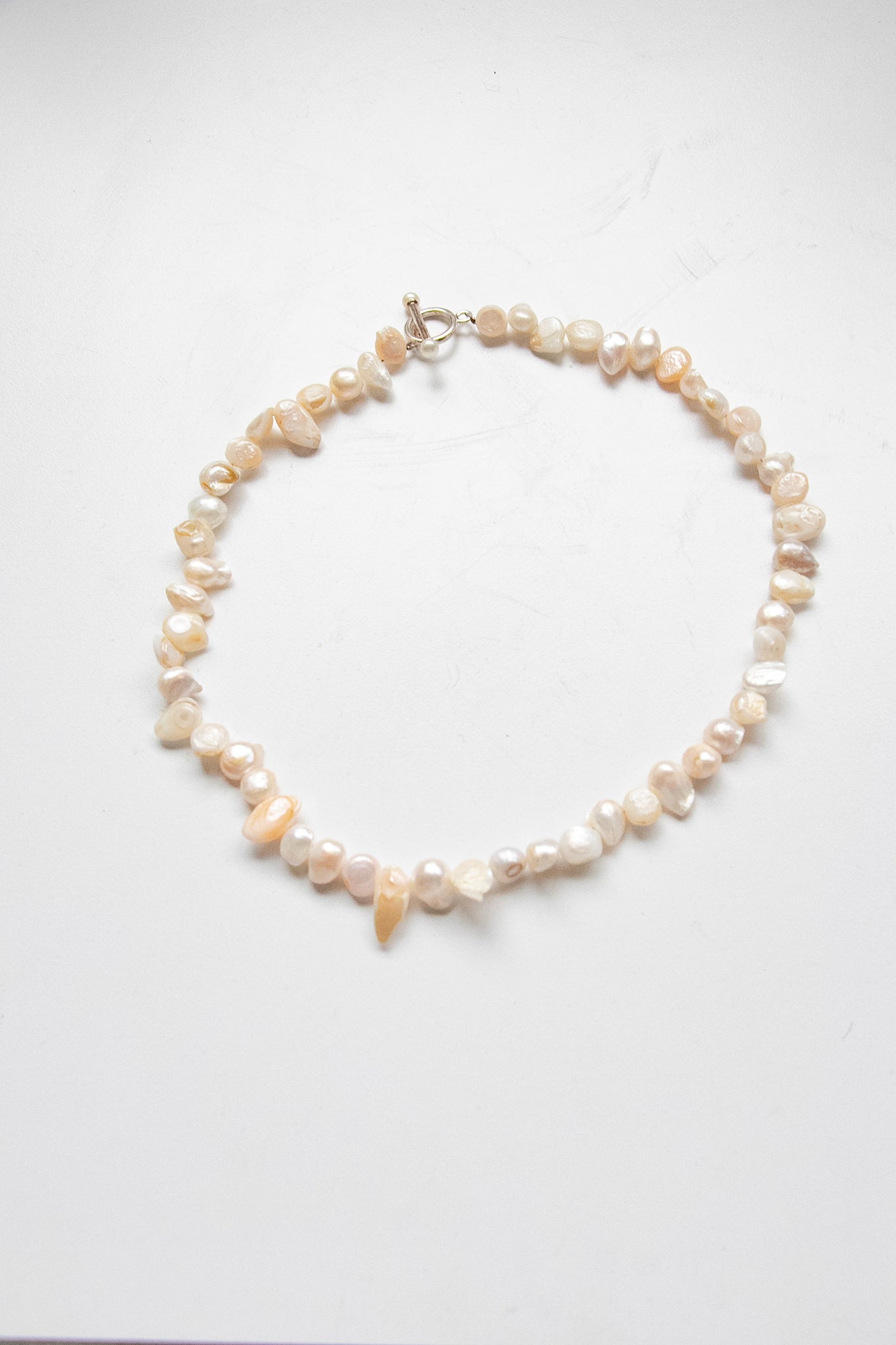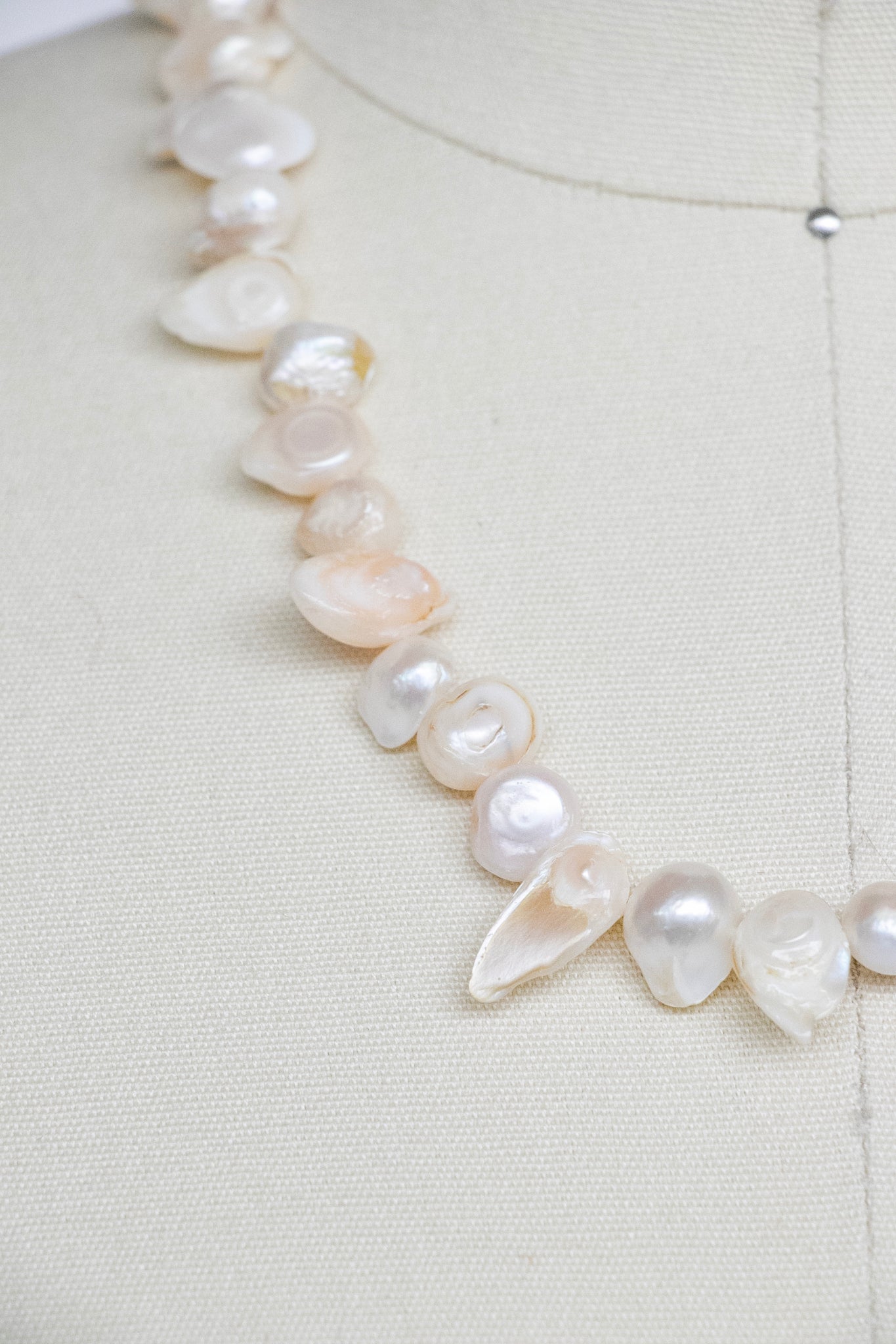 A lovely vintage 90s to Y2K single strand choker necklace of very lovely pearly shiny shells. varying shapes/sizes for a natural look.